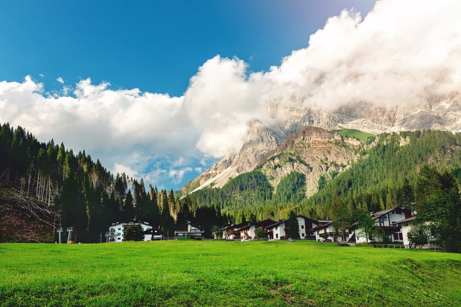 Ti eri abituata/o alle case in solida pietra? Qui a Mezzano invece è il legno a dare sfoggio di sé… E che panorama sulle Dolomiti!